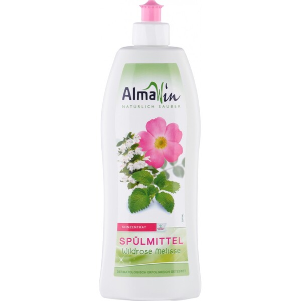 Detergentul de vase cu trandafir salbatic si melisa AlmaWin cu trandafiri salbatici curata vasele într-un mod natural puternic. Reteta îndeparteaza fara efort grasimea si murdaria si asigura vase curate stralucitoare. Melisa si extractul de nuci de sapun este blând cu pielea si mâinile. Mirosul floral din uleiurile esentiale face ca spalatul sa fie o experienta de parfum linistitoare. Cum devine ceva de zi cu zi un obicei frumos ...Detergent de vase cu trandafir salbatic si melisa vase curate stralucitoarenucile de sapun sunt blande cu pieleaparfum floral delicatfoarte concentratfara parfumuri sintetice, coloranti si conservantiProdus in GermaniaMod de utilizare si dozareEste suficienta o stropire 2 ml în apa de spalare. Dozele mai mari ar trebui folosite numai pentru tigai si oale foarte grase. Cum functioneazaDetergent de vase pentru spalat manual pentru vase, pahare, tacâmuri, oale, tigai etc.Detergent de vase este ideal si pentru tratarea petelor proaspete de grasime de pe textile. Pur si simplu umeziti zona patata, puneti detergent pe ea, tamponati si apoi spalati ca de obicei. Certificare VeganEcogarantieSticla realizata din deseuri de plastic 100% reciclate, reciclabile. EROII DE MEDIU pot fi recunoscuti dupa frunza mica verde.Eticheta este realizata din materiale reciclabile si este imprimata cu cerneluri fara ulei mineral. Calitate testata testata dermatologic cu succes.