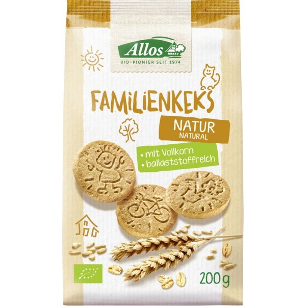 Biscuitii bio pentru toata familia reprezinta succesul delicios al întregii faini din brutaria fermei Allos. Allos Hof-Bäckerei produce produse bio de patiserie delicioase de cea mai înalta calitate din materii prime ecologice. Cu maiestrie si multa dragoste, brutarii nostrii au dezvoltat arta traditionala de coacere. Biscuitii noastri pentru intreaga familie cu desenele lor amuzante sunt coapti din faina de grâu ecologica si rafinati cu miere. Ideali pentru desert, gustarea dintre mese sau la drum. Indulcire Zahar crud de trestie bio, miere ecologicaPropulsor Bicarbonat de sodiu Origine si calitateTara Regiunea de origine Ingrediente principale diferite tariProdus organic daPonderea ingredientelor organice 100% organicSigiliul de stat Sigla organica a UEAdaugarea la tara a siglei UE Agricultura UE agricultura non-UEOrganismul de inspectie organica DE-ÖKO-001Ce standard este îndeplinit Standardul CEE 8342007 Aditivi, aviz legal nu exista aditivi declarabili disponibili