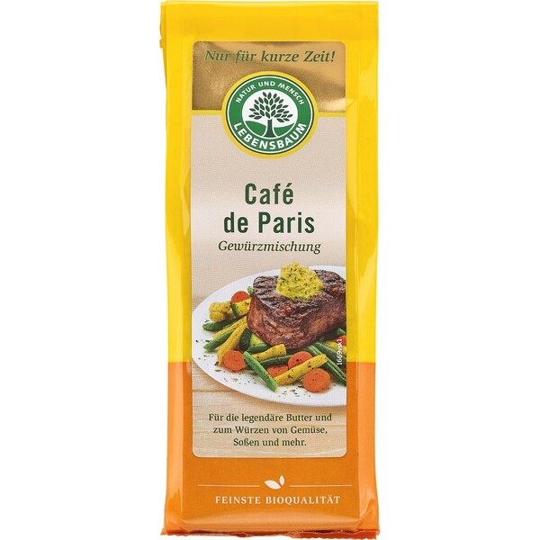 Lebensbaum Café de Paris mix de condimente bio. Untul condimentat ingenios este întotdeauna cireasa de pe tort pe friptura. Cu nota sa de fructe, amestecul de condimente însoteste, de asemenea, cu îndemânare pestele, pasarile de curte, legumele sau gratinele.