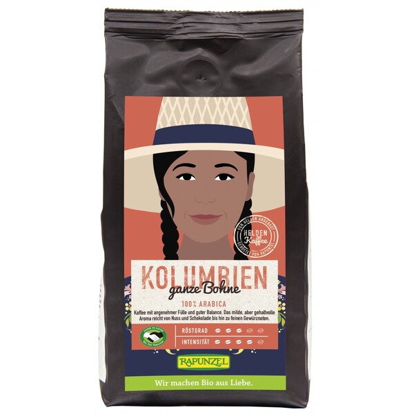Cafea bio cu o plenitudine placuta si un echilibru bun. Aroma blânda dar bogata variaza de la nuci si ciocolata pâna la note fine de condimente.Ambalaj cu supapa de protectie a aromei.