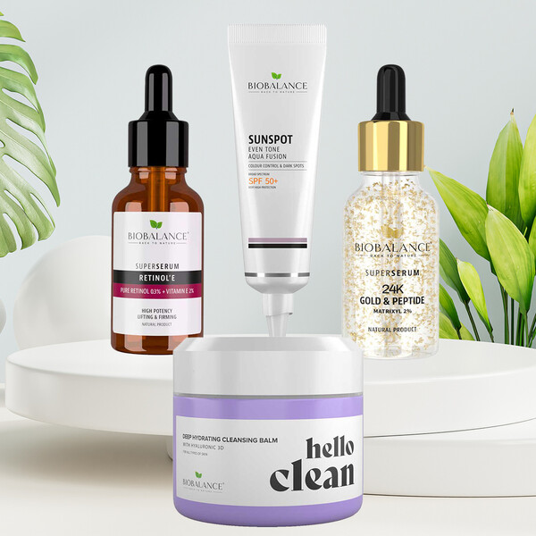 Setul antirid pentru fermitate si luminozitate Bio Balance este potrivit tuturor tipurilor de ten. Acesta este format din balsam de curatare faciala cu acid hialuronic + ser cu aur 24K + ser cu retinol & vitamina E + crema solara SPF 50+ uniformizanta.