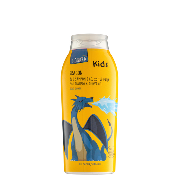 Sampon & gel de dus natural pentru copii, cu aloe vera si extract de ceai verde, Dragon, Biobaza, 250 ml