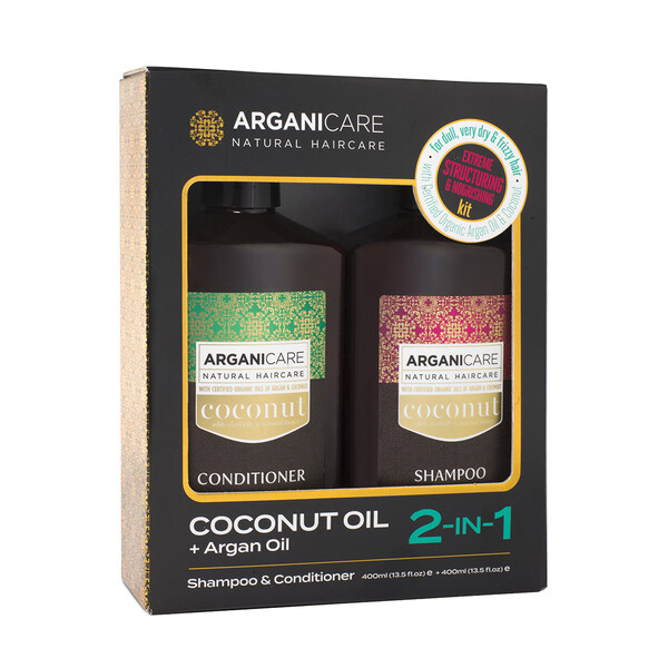 Set Sampon & Balsam pentru Par Tern, Foarte Uscat si Frizzy, cu Ulei de Argan Organic si Ulei de Cocos, Arganicare, 400 ml x2