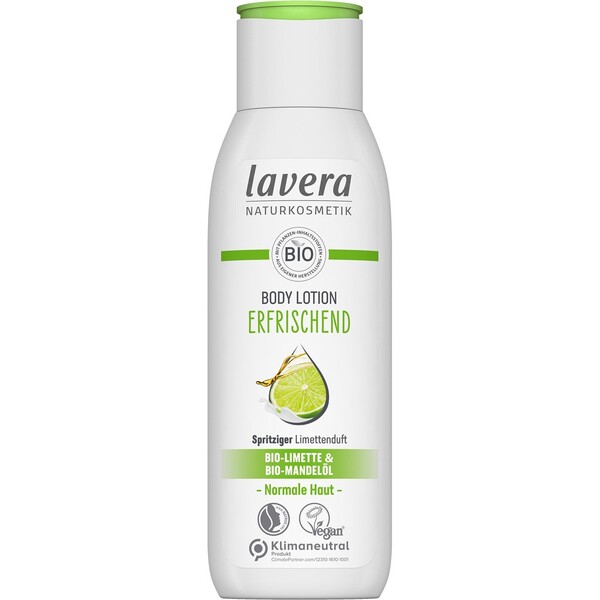 Lotiunea de corp racoritoare cu lime bio si ulei de migdale bio pentru piele normala. Experimentati senzatia lavera de îngrijire revigorantaFormula noastra blânda cu lime organic si ulei de migdale organic ofera o hidratare profunda pielii si rasfata simturile cu o aroma revigoranta. textura netedamiros de lime picant - Piele100% frumoasa naturalalime-ul bio emana un parfum savuros care trezeste simturile si are un efect revigorant.uleiul de migdale bio este foarte apreciat pentru calitatile sale hranitoare si emoliente.Promisiunea noastra formule biodegradabile fara uleiuri minerale sau parfumuri artificiale, coloranti sau conservanti*certificare conform standardului riguros independent de cosmetice naturale NATRUE. Testat dermatologicplasticul acestei sticle incl. capacul este realizat din material 100% reciclatvegan si certificare conform criteriilor PETAformule naturale exclusive, dezvoltate de echipa de cercetare a Lavera folosind cele mai bune ingrediente naturale* conform Regulamentului UE privind cosmeticele