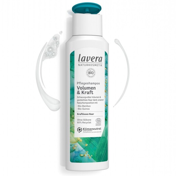 Descopera secretul Lavera pentru îngrijirea parului eficient natural. Compozitia noastra naturala echilibrata cu bambus organic si quinoa organica ofera parului slab mai mult volum si rezistenta, fara sa il incarce. Formula inovatoare de îngrijire îti ofera o experienta blânda si o capacitate de îmbunatatire semnificativa. Experimenteaza o noua dimensiune de îngrijire naturala si suplete fara silicon. Maseaza pe parul umed. Clatiti bine. Pentru un rezultat si mai bun, va recomandam si balsamul pentru volum si rezistenta Lavera.