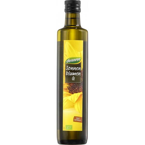 Ulei de floarea soarelui bio Dennree, virgin, presat la rece în sticla de 500 ml. Acest ulei versatil este presat la rece din seminte de floarea soarelui. Este potrivit pentru rafinarea salatelor si a legumelor crude. Ideal pentru salate si legume crude.
