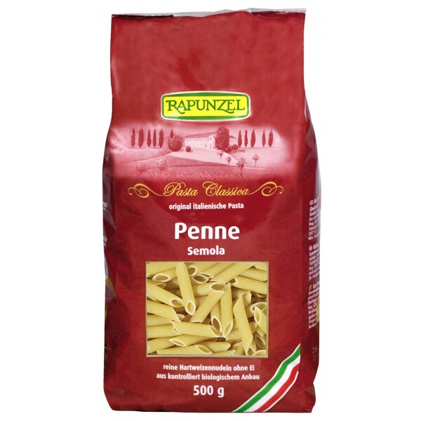 Unul din cele mai îndragite soiuri din lumea pastei. Penne, cu capete fine si sifonate. Pastificio-ul nostru italian face pastele Rapunzel dupa vechea traditie doar din cea mai buna semola italiana de grâu dur si apa pura de izvor. O uscare lenta si blânda la temperaturi scazute asigura gustul tipic si muscarea potrivita la gatit.Întrebuintare Se preteaza la orice sos.