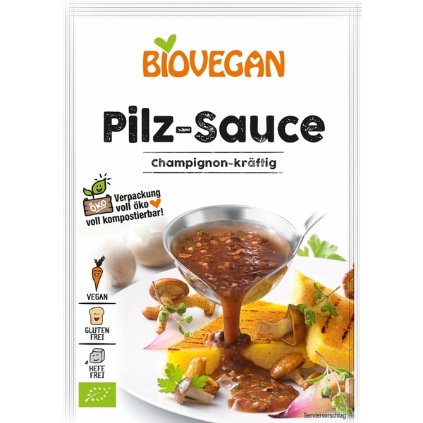 Sos de ciuperci cu o gama larga de condimente bio de înalta calitate. Impresioneaza cu continutul ridicat de ciuperci 22%. Sosul de ciuperci Biovegan cu gustul plin de ciuperci merge perfect cu paste de toate felurile, orez, cartofi si legume. Continut ridicat de ciuperci si, prin urmare, gust puternic de ciuperci.