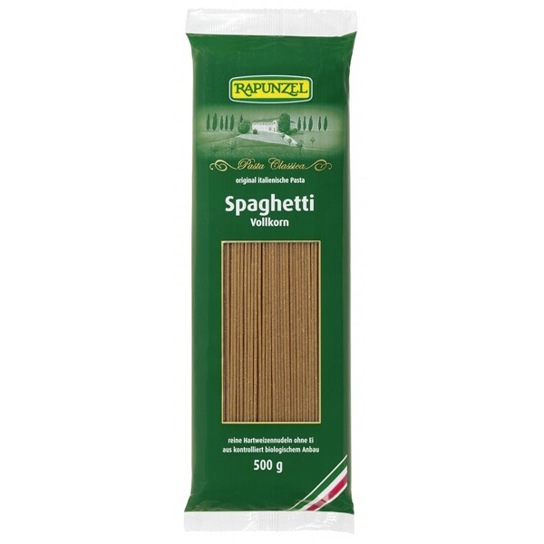 Spaghete - Forma originala de paste italiene. Pastificio italiana produce paste de rapita Rapunzel conform traditiei antice numai din cel mai bun grâu dur si din apa de primavara pura. Uscarea lenta si usoara la temperaturi scazute asigura gustul tipic la gatit. Dupa presarea si formarea cu matrita corespunzatoare, uscarea lenta si usoara are loc în decurs de 22 de ore, la maximum 65 ° C.Întrebuintare Clasic cu pasta de tomate.