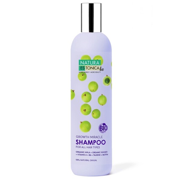Cosmeticele Natura Estonica sunt formulate folosind plante pline de energie și putere, care conțin vitaminele și micronutrienții necesari pentru a lăsa părul să arate și să se simtă cel mai bine. Sampon pentru stimularea cresterii parului Hair Growth Miracle pentru toate tipurile de păr ajută la stimularea creșterii și la prevenirea căderea părului. Extractul organic de amla ajută la accelerarea creșterii părului și îl face sănătos și strălucitor. Extractul organic de ghimbir împreună cu un complex de ingrediente active întărește părul. menține strălucirea și elasticitatea, protejează împotriva ruperii și face părul mai puternic.